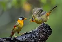 银耳相思鸟小型鸟类,体长14~18厘米。头顶黑色,耳羽银灰色,前额橙黄色;外侧飞羽橙黄色,基部朱红色,极为鲜艳、醒目。尾圆形,尾上、尾下覆羽朱红色,尾暗灰褐色,外侧尾羽橙黄色,其余上体橄榄绿或橄榄黄色。…全部>>