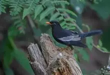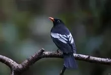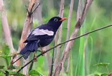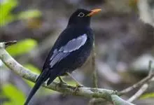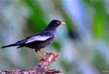 灰翅鸫是鸫科、鸫属中型鸟类。体长26-29厘米。雄鸟通体黑色,翅上具大而明显的淡灰色翼斑,在黑色体羽的衬托下极为醒目。腹至尾下覆羽具银灰色羽缘,形成明显的银灰色鳞状斑。嘴橙黄色,眼周黄色。…全部>>