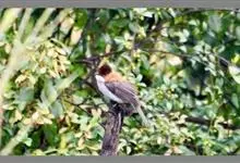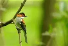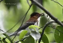 栗背短脚鹎,体长18-22厘米。上体栗褐,头顶和羽冠黑色。背栗色、翅和尾暗褐色具白色或灰白色羽缘。颏、喉白色,胸和两胁灰白色,腹中央和尾下覆羽白色。…全部>>