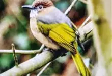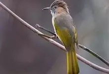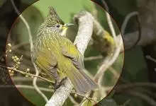 绿翅短脚鹎是鹎科、短脚鹎属的鸟类。共有9个亚种。中型鸟类,体长20-26厘米。头顶羽毛形尖、栗褐色具白色羽轴纹,在暗色的头部极为醒目。上体灰褐缀橄榄绿色,两翅和尾亮橄榄绿色。耳和颈侧红棕色,颏、喉灰色,…全部>>