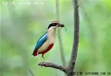 蓝翅八色鸫是雀形目八色鸫科的鸟类。体长17-20厘米,体重类约48-70克,体型圆胖,尾短,腿长,以身体具有红、绿、蓝、白、黑、黄、褐、栗等鲜艳夺目,丰富艳丽的色彩而得名,是很有观赏价值的鸟类。主要…全部>>