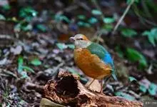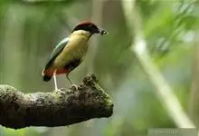 栗头八色鸫又叫锅巴雀,体长为24-26厘米,体重100-135克,是雀形目八色鸫科的鸟类。体型圆胖,尾短,腿长,常在森林底层或低植被中找食无脊椎动物。叫声简单哀婉。…全部>>