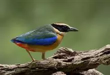 蓝翅八色鸫是雀形目八色鸫科的鸟类。体长17-20厘米,体重类约48-70克,体型圆胖,尾短,腿长,以身体具有红、绿、蓝、白、黑、黄、褐、栗等鲜艳夺目,丰富艳丽的色彩而得名,是很有观赏价值的鸟类。主要…全部>>