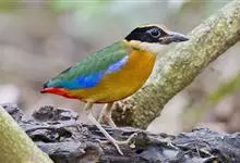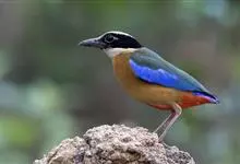 蓝翅八色鸫是雀形目八色鸫科的鸟类。体长17-20厘米,体重类约48-70克,体型圆胖,尾短,腿长,以身体具有红、绿、蓝、白、黑、黄、褐、栗等鲜艳夺目,丰富艳丽的色彩而得名,是很有观赏价值的鸟类。主要…全部>>