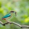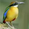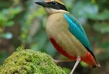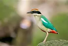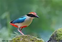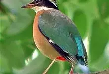 蓝翅八色鸫是雀形目八色鸫科的鸟类。体长17-20厘米,体重类约48-70克,体型圆胖,尾短,腿长,以身体具有红、绿、蓝、白、黑、黄、褐、栗等鲜艳夺目,丰富艳丽的色彩而得名,是很有观赏价值的鸟类。主要…全部>>