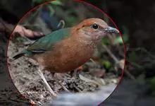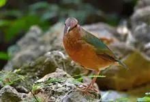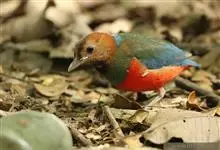 栗头八色鸫又叫锅巴雀,体长为24-26厘米,体重100-135克,是雀形目八色鸫科的鸟类。体型圆胖,尾短,腿长,常在森林底层或低植被中找食无脊椎动物。叫声简单哀婉。…全部>>