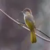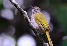 灰短脚鹎,体长19-22厘米。头顶和短的羽冠黑色,上体暗灰色,耳羽灰褐色,两翅表面橄榄绿黄色。大覆羽和内侧飞羽外翈橄榄黄色,在翅上形成大块绿黄色斑,在灰色的上体极为醒目。尾暗褐色具橄榄绿色羽缘。…全部>>