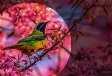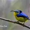 蓝翅叶鹎:小型鸟类,体长15-18厘米。雄鸟通体草绿色,尾蓝绿色,肩和翅亮蓝 色,胸缀有黄色,颏、喉黑色。雌鸟颏,喉蓝绿色。栖息在海拔1500米以下的常绿阔叶林、次生林和林缘疏林灌丛中。…全部>>