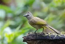 黄绿鹎,小型鸟类,体长19-22厘米。额至头顶暗褐具灰色羽缘,眼先黑色,其上面有一粗著的白纹从鼻后至眼,在黑色的头部极为醒目。上体橄榄绿褐色。颏、喉淡灰色或灰白色,胸灰褐色具橄榄黄色羽缘,…全部>>