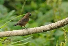 栗腹文鸟:小型鸟类,体长10-12厘米。嘴蓝灰色,基部粗厚,先端尖、呈圆锥状, 脚亦为蓝灰色,整个头、颈和上胸黑色,其余体羽栗色,或下胸和腹中央至尾下覆羽黑色。尾栗红色。全部>>