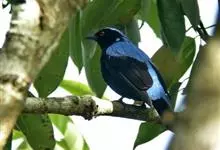 和平鸟中型鸟类,体长24~28厘米。眼红色,嘴、脚黑色。雄鸟从头顶到尾上覆羽等整个上体辉蓝色具紫色光泽,其余体羽黑色。雌鸟通体铜蓝色,仅飞羽黑褐色。常见的低地留鸟,…全部>>