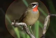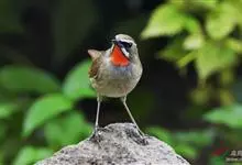 红点颏:是鸟纲、鹟科的鸣禽。又名西伯利亚歌鸲。体长14-17厘米,体重16-27克。雄鸟头部、上体主要为橄榄褐色。眉纹白色。颏部、喉部红色,周围有黑色狭纹。胸部灰色,腹部白色。雌鸟颏部、喉部不呈赤红色,…全部>>