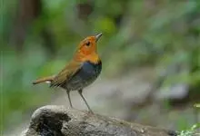 日本歌鸲:体型小似麻雀,但羽毛颜色较为美丽。嘴细长,嘴须不发达;翅短圆,上体草黄褐;雄鸟喉部橙棕色,十分明显,雌鸟却转为淡橙黄色。第一枚初级飞羽短狭;尾长约为跗蹠长度的二倍;跗蹠黑褐色,形粗长而健。…全部>>