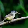 黄腹鹪莺:体长13厘米,是一种体型略大而尾长的橄榄绿色鹪莺。喉及胸白色,以下胸及腹部黄色为其特征。头灰,有时具浅淡近白的短眉纹;上体橄榄绿色;腿部皮黄或棕色。换羽导致羽色有异。繁殖期尾较短,…全部>>