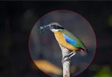 蓝翅八色鸫是雀形目八色鸫科的鸟类。体长17-20厘米,体重类约48-70克,体型圆胖,尾短,腿长,以身体具有红、绿、蓝、白、黑、黄、褐、栗等鲜艳夺目,丰富艳丽的色彩而得名,是很有观赏价值的鸟类。主要…全部>>