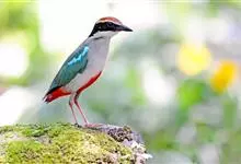 蓝翅八色鸫是雀形目八色鸫科的鸟类。体长17-20厘米,体重类约48-70克,体型圆胖,尾短,腿长,以身体具有红、绿、蓝、白、黑、黄、褐、栗等鲜艳夺目,丰富艳丽的色彩而得名,是很有观赏价值的鸟类。主要…全部>>