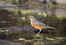 赤颈鸫是鸫科、鸫属中型鸟类,体长22-25厘米。上体灰褐色,有窄的栗色眉纹。颏、喉、上胸红褐色,腹至尾下覆羽白色,腋羽和翼下覆羽橙棕色。虹膜暗褐色,嘴黑褐色,下嘴基部黄色,脚黄褐色或暗褐色。…全部>>