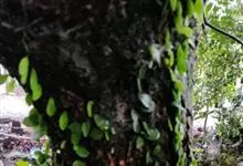 伏石蕨是水龙骨科、伏石蕨属小型附生蕨类植物。根状茎细长横走,淡绿色,疏生鳞片粗筛孔,两侧不规则分叉。叶远生,二型;叶片近球圆形或卵圆形,基部圆形或阔楔形,全缘;能育叶狭缩成舌状或狭披针形,叶脉网状,…全部>>