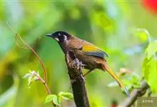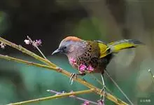 黑顶噪鹛:中型鸟类,体长24-26厘米。前额、脸、颏、喉黑色,头顶黑褐沾棕或深棕橄榄褐色,背栗褐或棕褐色,颧斑白色或棕红色,眼后缘和颈侧亦具白斑,飞羽金黄橄榄色而具蓝灰色尖端。下体淡棕褐色。…全部>>