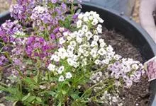 香雪球 Desv.),十字花科香雪球属草本植物,高15-30厘米。植株矮小,分枝较多;茎自基部向上分枝;叶披针形或条形;花序伞房状,花小有微香,花瓣淡紫色或白色;果短椭圆形无毛或少毛;花期温室3-4月,…全部>>
