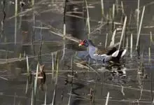 黑水鸡:是鹤形目、秧鸡科的鸟类,共有12个亚种。中型涉禽,体长24-35厘米。嘴长度适中,鼻孔狭长;头具额甲,后缘圆钝;嘴和额甲色彩鲜艳。翅圆形,第2枚初级飞羽最长,或第2枚和第3枚初级飞羽等长,…全部>>