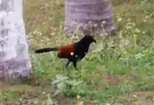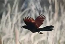 褐翅鸦鹃,是鹃形目鸦鹃科鸦鹃属的鸟类。褐翅鸦鹃的身体为黑色;头颈和胸带蓝紫色金属光泽并具黑亮的羽干纹,下胸至腹部泛金属绿光泽;两翼和肩部为棕栗色,外侧飞羽具暗色羽端,尾羽闪铜绿色光泽;虹膜赤红色,…全部>>