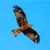 黑鸢:是鹰科、鸢属的一种中型猛禽,共有5个亚种。体长54-69厘米。上体暗褐色,下体棕褐色,均具黑褐色羽干纹,尾较长,呈叉状,具宽度相等的黑色和褐色相间排列的横斑;飞翔时翼下左右各有一块大的白斑。…全部>>