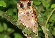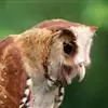 栗鸮:是鸟纲、草鸮科的猫头鹰。体长约29厘米,体重311-360克。是一种中等体型的红褐色鸮。其心形脸庞及时而竖起的“耳朵”与仓鸮甚似。上体红褐而具黑白点斑,下体皮黄偏粉具黑点,脸近粉色。虹膜深褐色,…全部>>