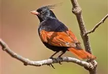 凤头鹀:属小型鸣禽,体重21-31克,体长134-175毫米。以头顶的细长羽冠为特征,雄鸟全身几乎均为黑色具蓝色光泽,两翅和尾以及尾上覆羽栗红色。雌鸟具短的褐色羽冠,上体暗橄榄褐色,…全部>>