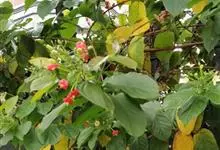 使君子 Jongkind)是使君子科、使君子属攀援灌木,叶对生,椭圆形,两面均被灰白色柔毛。穗状花序,倒挂下垂。花期夏秋。果有五棱,熟时黑色,种子白色。分布于印度、缅甸、菲律宾和中国。喜温润,深根性,…全部>>