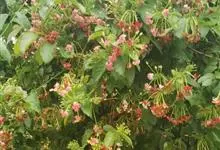 使君子 Jongkind)是使君子科、使君子属攀援灌木,叶对生,椭圆形,两面均被灰白色柔毛。穗状花序,倒挂下垂。花期夏秋。果有五棱,熟时黑色,种子白色。分布于印度、缅甸、菲律宾和中国。喜温润,深根性,…全部>>