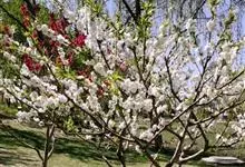 榆叶梅,是蔷薇科李属灌木稀小乔木植物。榆叶梅枝条开展,具多数短小枝;叶片宽椭圆形至倒卵形,先端短渐尖,叶边具粗锯齿或重锯齿;花果期4-7月;花先于叶开放;雄蕊短于花瓣,花柱稍长于雄蕊;果实近球形,红色,…全部>>