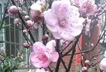 梅:蔷薇科、李属木本植物。小乔木,稀灌木,高4-10米;树皮浅灰色或带绿色,平滑;小枝绿色,光滑无毛。叶片卵形或椭圆形,叶边常具小锐锯齿,灰绿色。花单生或有时2朵同生于1芽内,直径2-2.5厘米,…全部>>