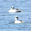 斑头秋沙鸭,是鸭科、斑头秋沙鸭属鸟类。雄鸟眼先和眼周黑色,成块斑状;头部其余部分全为白色。颈白色;背黑色,上背最前处的白羽具有黑端,相连而成两条半圆环狭带。下体白色,体侧羽毛具黑褐色波状细纹。…全部>>