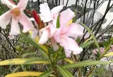 夹竹桃,又名红花夹竹桃、欧洲夹竹桃,是夹竹桃科夹竹桃属的一种常绿直立大灌木,枝条灰绿色,含水液。叶披针形,3叶轮生。聚伞花序顶生,花冠粉红至深红色,花冠漏斗状,有特殊香味。蓇葖果,圆柱形。种子长圆形,…全部>>