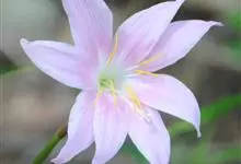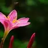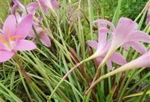 小韭兰学名韭菜莲又名风雨花、菖蒲莲、红玉帘和旱水仙,多年生草本,鳞茎卵球形,基生叶常数枚簇生,线形,扁平,花单生于花茎顶端,下有佛焰苞状总苞,花玫瑰红色或粉红色,蒴果近球形,种子黑色,花期夏秋。韭莲…全部>>