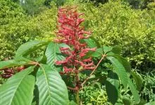 红花七叶树是七叶树科七叶树属植物,落叶乔木。树高可达15-20米,树冠伞形,干形挺拔。小枝粗壮,栗褐色,光滑无毛。掌状复叶小叶通常5枚,成树5-7枚,无柄,叶片倒卵形至长椭圆形,边缘有不规则重锯齿。…全部>>