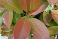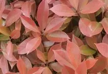 石楠 Kalkman),是蔷薇科石楠属的常绿乔木,高5~12米,株型紧凑,树冠圆球形。树枝为褐灰色;鳞片为褐色,没有毛;叶片革质,长椭圆至侧卵状椭圆形,有锯齿,新叶红色光亮。复伞房花序,白色小花,…全部>>