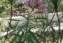 夹竹桃,又名红花夹竹桃、欧洲夹竹桃,是夹竹桃科夹竹桃属的一种常绿直立大灌木,枝条灰绿色,含水液。叶披针形,3叶轮生。聚伞花序顶生,花冠粉红至深红色,花冠漏斗状,有特殊香味。蓇葖果,圆柱形。种子长圆形,…全部>>