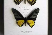 金裳凤蝶是凤蝶科、裳凤蝶属的动物。金裳凤蝶身体呈黑色,头、颈和胸侧有红毛,腹部有黑黄两色相间条纹,雄蝶前翅黑色,具黑天鹅绒光泽,各脉两侧灰白色,后翅金黄色,各室外缘有等腰三角形黑斑1枚,斑内侧有晕,…全部>>
