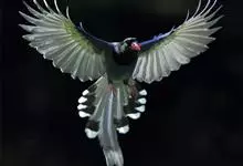 台湾蓝鹊:体长64至65厘米,翼展18至21厘米,尾长约40厘米,尾羽长占了总体长的三分之二。头、脸、颈、喉、胸都是黑色,黄色的眼珠包围黑色的瞳孔,鲜红色的鸟喙、双脚,…全部>>