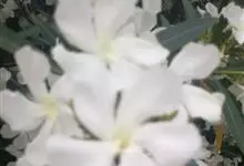 白花夹竹桃是夹竹桃科、夹竹桃属植物夹竹桃的栽培品种。常绿直立大灌木,枝条灰绿色;嫩枝条具稜,被微毛,老时毛脱落。叶3-4枚轮生,下枝为对生,叶面深绿,叶背浅绿色;侧脉纤细平行与中脉成直角;叶柄扁平,…全部>>