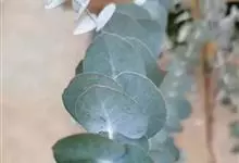 银叶桉是桃金娘科、桉属常绿灌木或小乔木,株高可达15米。幼树干皮红褐色,成树光滑灰白色。幼树叶对生,叶片阔卵形或阔盾形;银白色。伞形花序,小花白色,蒴果球形。…全部>>