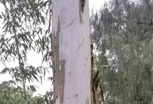 柠檬桉,又名“油加利树”“尤加利树”,是桃金娘科、桉属的常绿大乔木。树高28m,树皮光滑;幼态叶片披针形,有腺毛,基部圆形,叶柄盾状着生,成熟叶片狭披针形;圆锥花序腋生,花蕾长倒卵形;蒴果壶形,…全部>>