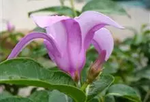 桉叶藤是属于桉叶藤属萝藦科的一种植物。木质藤本,枝攀缘性,具白色乳液。叶对生,长卵形或长椭圆形,先端短突,全缘,革质。夏季开花,短聚伞花序,顶生,花冠漏斗形,先端5裂,粉紫色。瞢薆果2枚水平对生,…全部>>