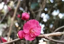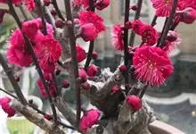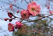 宫粉梅 Rehd.)是蔷薇科、李属植物,梅花品系中真梅系直枝梅类宫粉型,其花复瓣至重瓣,呈或深或浅的红色。落叶乔木,高达10米。树干褐紫色,有纵驳纹,小枝细而无毛,多为绿色。叶广卵形至卵形,…全部>>
