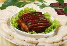 梅菜扣肉,汉族传统名菜,属客家菜 。制作材料有五花肉、梅菜、葱白、姜片等。全部>>