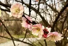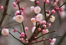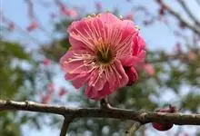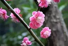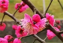宫粉梅 Rehd.)是蔷薇科、李属植物,梅花品系中真梅系直枝梅类宫粉型,其花复瓣至重瓣,呈或深或浅的红色。落叶乔木,高达10米。树干褐紫色,有纵驳纹,小枝细而无毛,多为绿色。叶广卵形至卵形,…全部>>