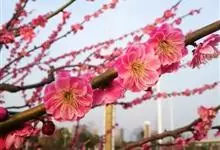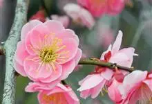 宫粉梅 Rehd.)是蔷薇科、李属植物,梅花品系中真梅系直枝梅类宫粉型,其花复瓣至重瓣,呈或深或浅的红色。落叶乔木,高达10米。树干褐紫色,有纵驳纹,小枝细而无毛,多为绿色。叶广卵形至卵形,…全部>>