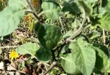 茄茄科,茄属植物。茄直立分枝草本至亚灌木,高可达1米,小枝,叶柄及花梗均被6-8-分枝,平贴或具短柄的星状绒毛,小枝多为紫色,渐老则毛被逐渐脱落。叶大,卵形至长圆状卵形,叶柄长约2-4.5厘米。能孕…全部>>